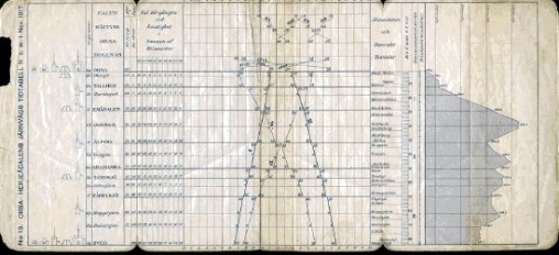 In this presentation, I will talk about the inclusion of so-called graphical railroad time tables (see figure above) as an example of such a graphical illustration. Among other things, I will discuss the origins of this real-life application of mathematics, its actual use, and how its inclusion in the textbooks evolved over time.
