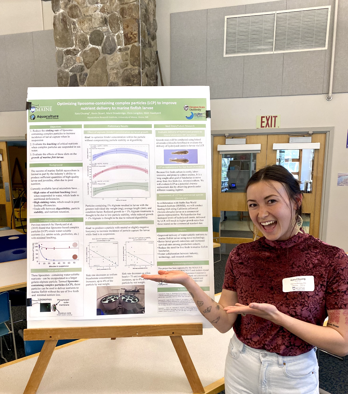 The beginning of May at the Darling Marine Center welcomes us with blooming birches, warmer sun, and the end of another academic year, giving graduate students the opportunity to present their research. This past week, more than 60 School of Marine Sciences graduate students, some affiliated with the Aquaculture Research Institute (ARI), gathered for a symposium in Brooke Hall to highlight innovative work in their fields of study. Presentations covered a wide range of topics, from genetics to environmental monitoring, demonstrating the diversity and depth of research conducted at ARI. Beyond the statistics and data, the research presented by these graduate students has a broader implication for climate change, environmental management, and environmental policy. With both warming waters and a growing aquaculture sector in Maine, it’s critical to understand our coastal ecosystem and the communities reliant upon them.