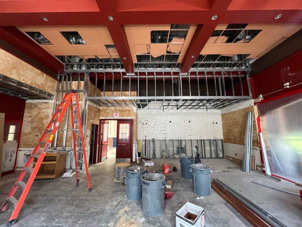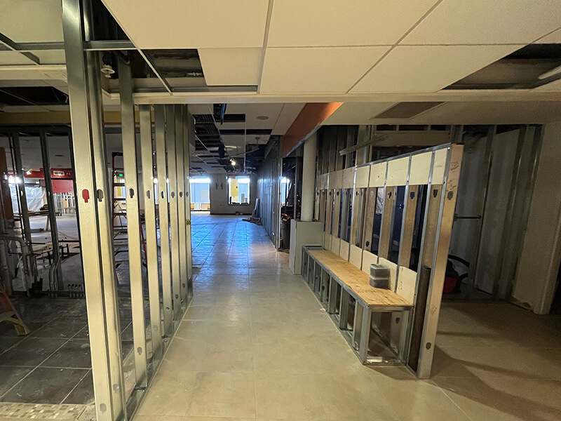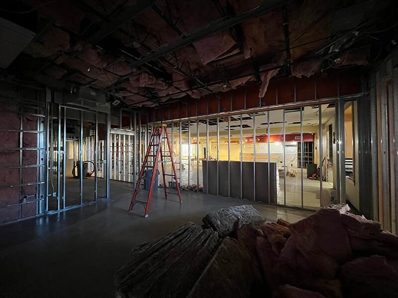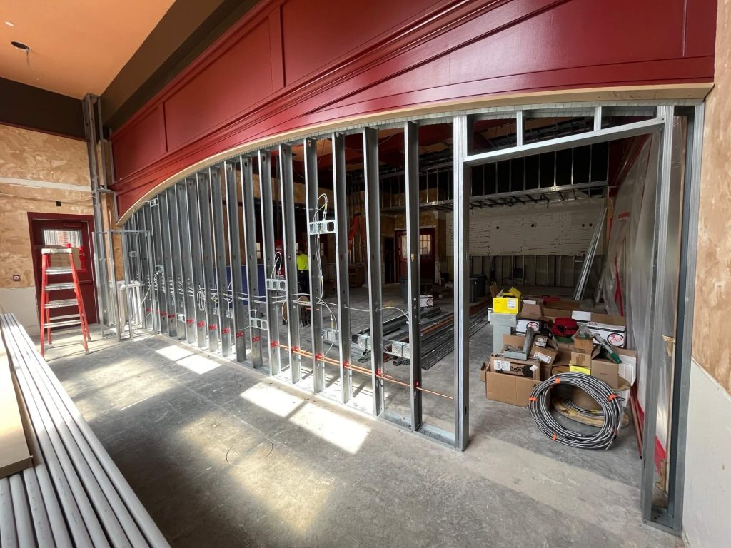 Construction teams have completed the demolition work inside the Class of 1944 Bear’s Den. The walls are in place awaiting the finishing touches.