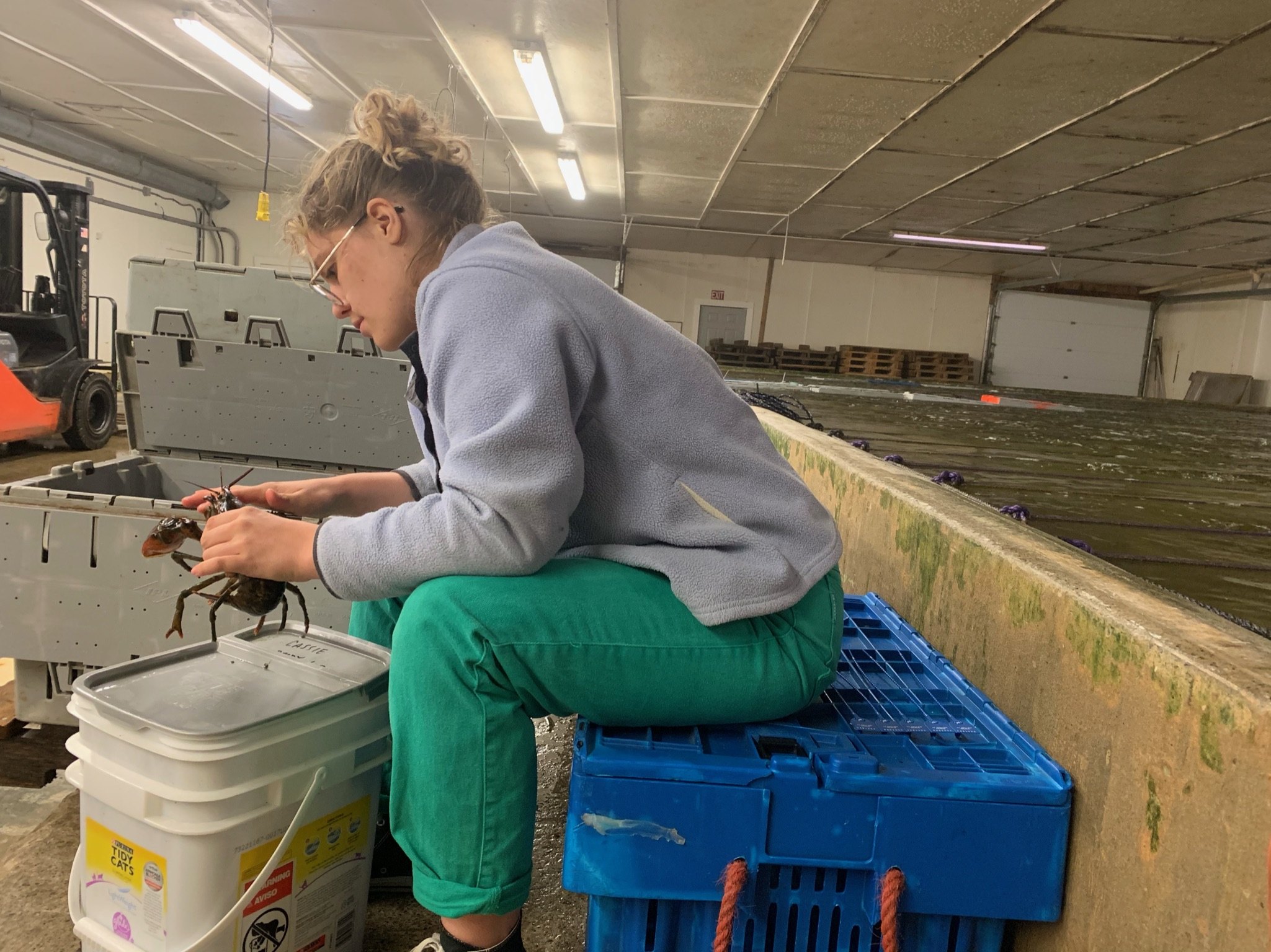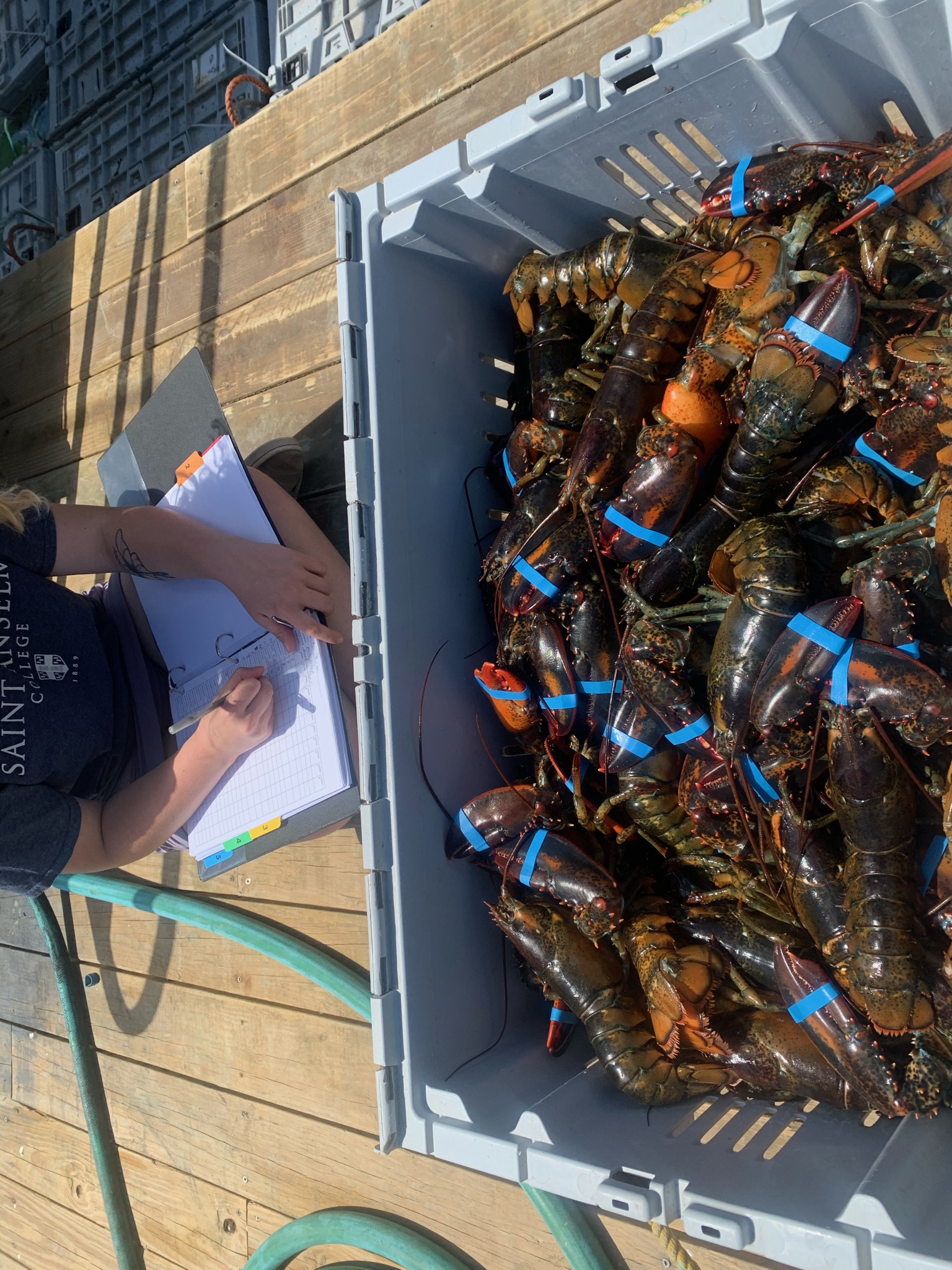 Hello! My name is Addie and I am Cassie’s intern for the summer and will help out with her Lobster Supply Chain project. This summer we will focus on lobster’s behavioral reflexes and their reflex impairment scores and how this relates to mortality events. This summer on Mondays we will be monitoring seven different lobster reflexes in order to build a reflex action mortality predictor (RAMP) model. To do this, each week we will get a crate or two of lobsters and observe their reflexes. In theory, the loss of these reflexes coincides with the likelihood of lobster mortality, and together they create a RAMP curve. By monitoring the loss of these reflexes and at various transition points within the supply chain; Boat/Wharf, Wharf/Truck, Truck/Dealer, and collecting data from points, Cassie’s project aims to monitor lobster health and indicators of poor lobster health in order to reduce mortality within the supply chain and economic losses within the industry.