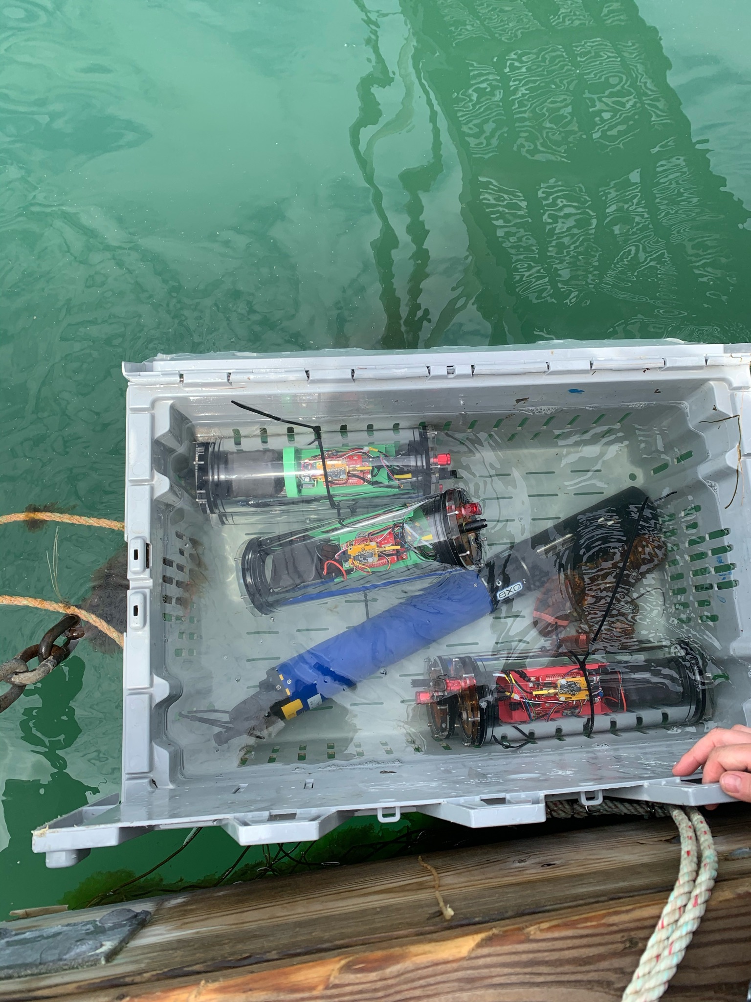 This week we started to go into the field. On Tuesday we deployed a Seahorse and a HOBO + Conductivity meter. These two instruments will remain anchored for the duration of the summer to collect data and demonstrate how aspects of water quality change throughout the summer. This information, combined with the RAMP, will then be used to determine if these conditions have a negative impact on lobster health.