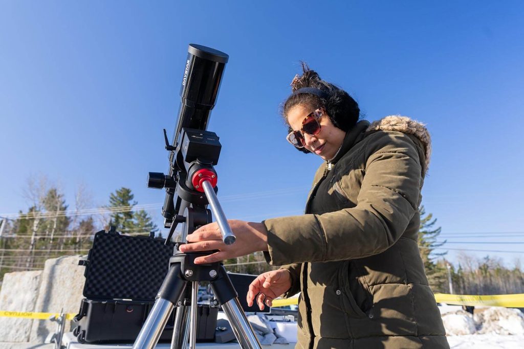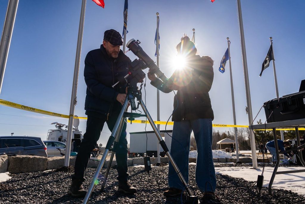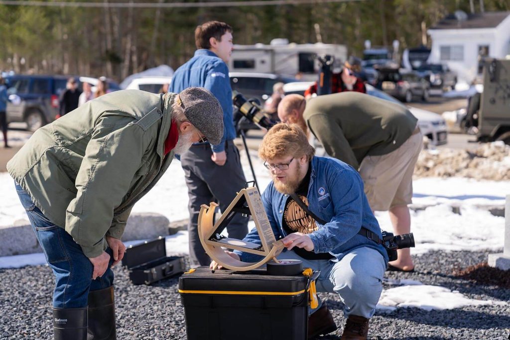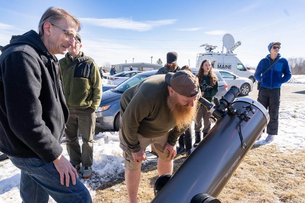 Mainers are helping collect images and data of the total solar eclipse for a nationwide citizen science project: CATE2024. UMaine’s Shawn Laatsch and Nikita Saini trained them how to use specialized telescopes to conduct their work.