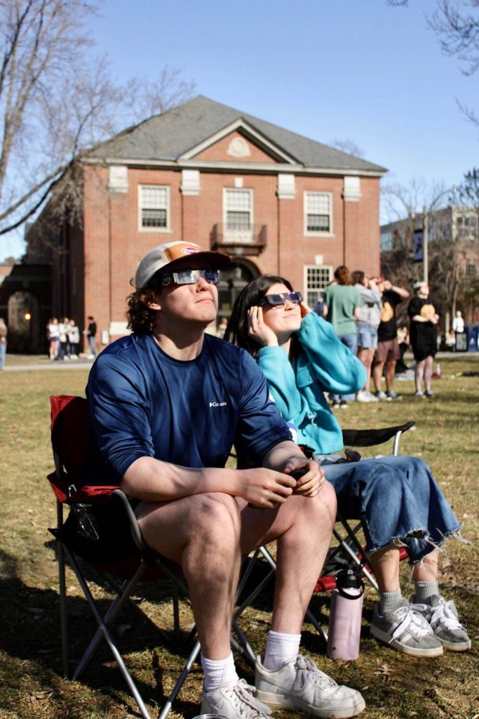 Orono was located outside of the path of totality, meaning they were only able to witness a partial solar eclipse. Regardless, hundreds of people gathered on the Mall to watch the moon cover 98.9% of the sun, leaving a glowing sliver in the sky.