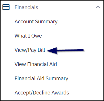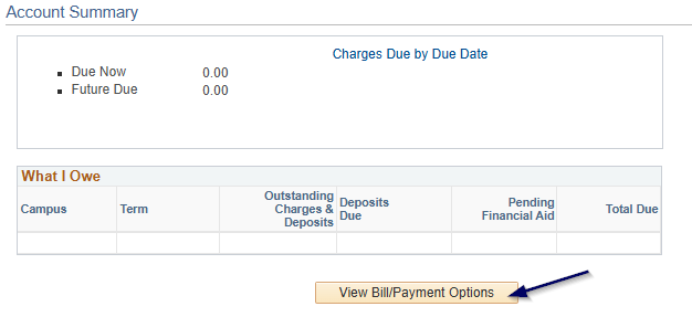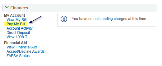 2. Click on “Pay My Bill” (even though the Student Center shows no bill is due).