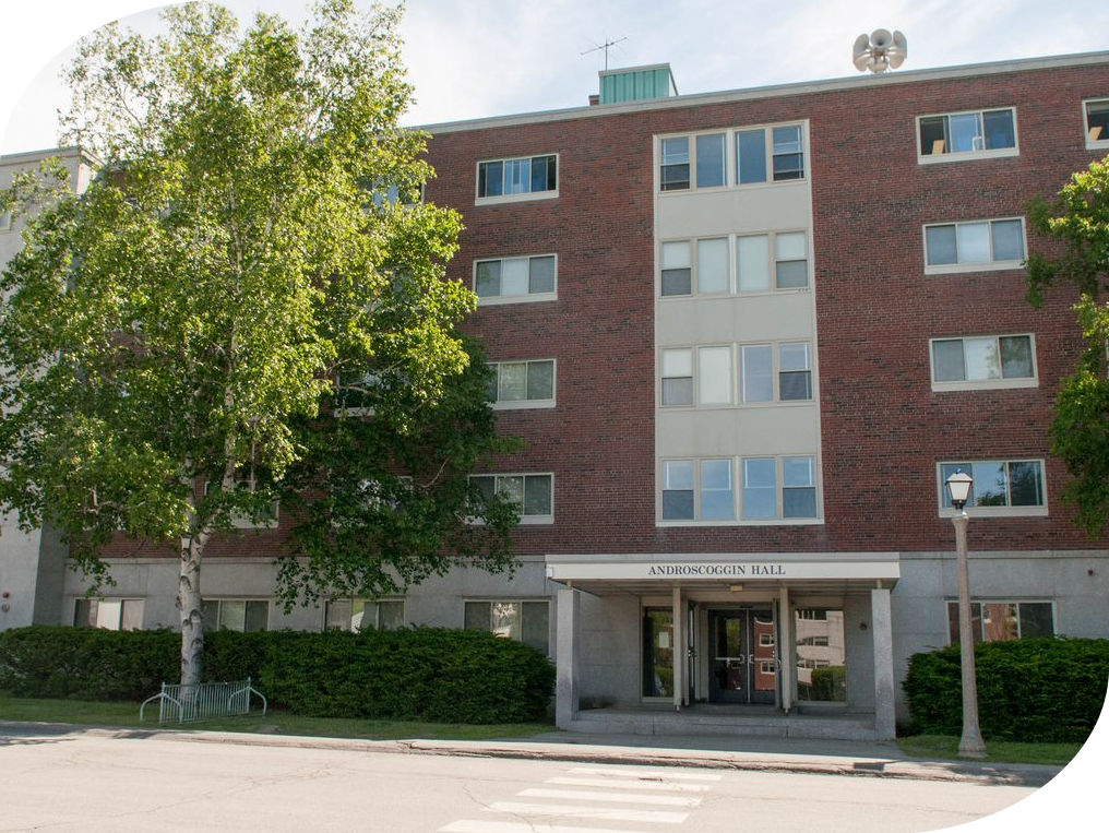 Located on the northwest side of campus, Androscoggin Hall is near Hilltop Dining, the athletic fields, the Fernald Engineering Building, and the New Balance Student Recreation Center.