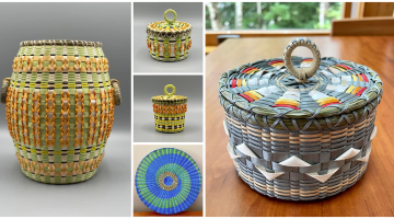 Theresa Secord (b.1958) is a traditional Penobscot basket maker. Theresa learned to weave in a traditional setting on Indian Island Maine in 1988 from an elder in the community, Madeline Tomer Shay. She uses her great-grandmother’s wooden forms and tools dating to the 1800s that have been handed down to her. Theresa is teaching many