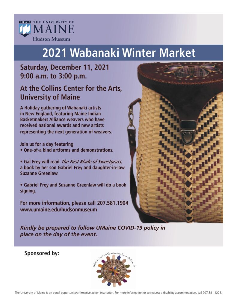 A Holiday gathering of Wabanaki artists in New England, featuring Maine Indian Basketmakers Alliance weavers who have received national awards and new artists representing the next generation of weavers. Join … Continue reading 2021 Wabanaki Winter Market