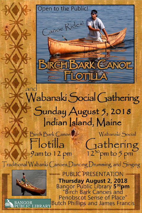 As part of their Community Day celebrations, the Penobscot Nation will host their Annual Wabanaki Social Gathering and Inaugural Birch Bark Canoe Flotilla on Indian Island. In addition, on Thursday August 2nd there will be a presentation at Bangor Public Library about the history and tradition of the birch bark canoe. These events are open to the public! See the attached flyer for details and don’t miss out!