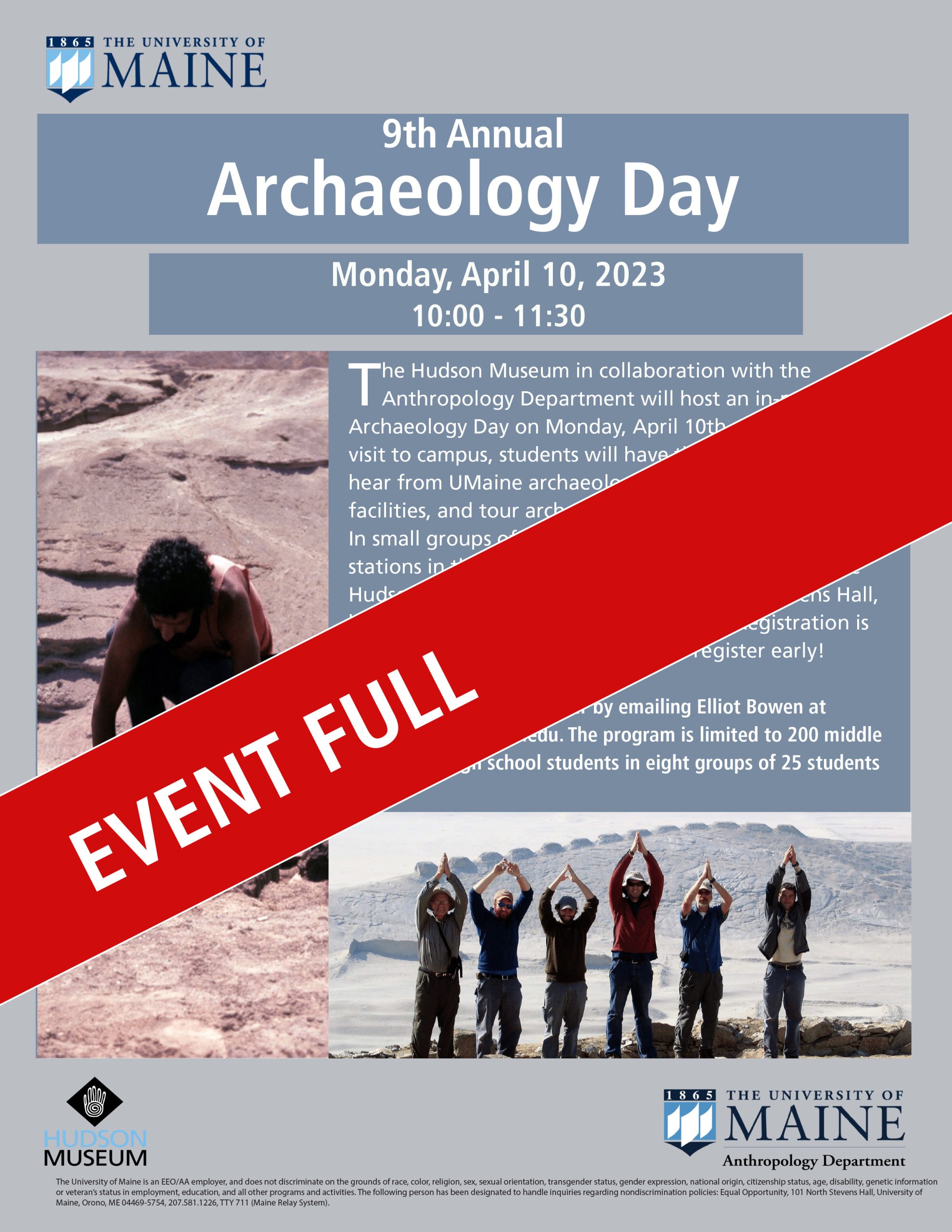 The Hudson Museum in collaboration with the Anthropology Department will host an in-person Archaeology Day. During their visit to campus, students will have the opportunity to hear from UMaine archaeologists, visit Hudson Museum facilities, and tour archaeology labs and collection areas. In small groups of 25, students will visit four stations: two stations in the […]