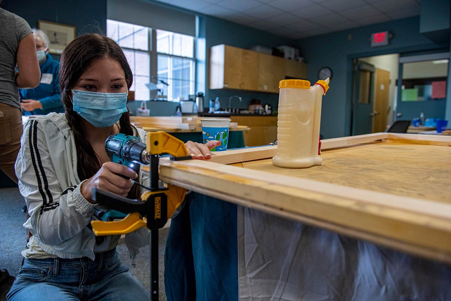 That seed began to sprout when as a junior, Lamb came across a listing for an undergraduate research assistantship with Sharon Klein, associate professor in the School of Economics. The position was for a project led by Penobscot Nation citizen Shantel Neptune to weatherize homes with window inserts made in collaboration with the nonprofit organization WindowDressers. The research assistant would help build these window inserts, which are removable frames wrapped on each side with tightly-sealed, clear film that creates an insulating airspace to prevent heat loss in the winter, and finished around the edges with a compressible foam gasket that provides a tight seal while allowing the inserts to slide in and out of place for seasonal changes. The position also involved surveying tribal citizens about their opinions and preferences about alternative energy.