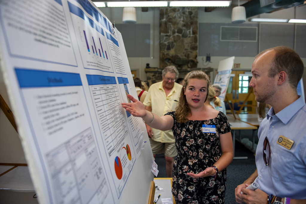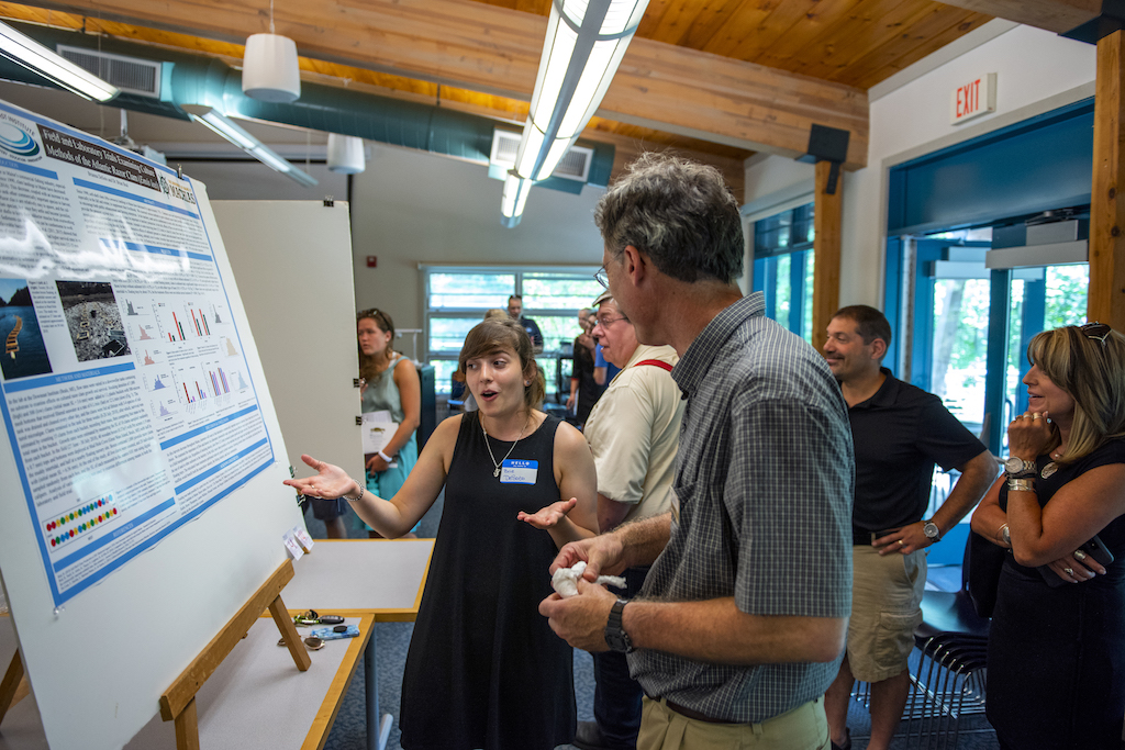 The students’ work culminated at the SEA Fellows Science Symposium Aug. 7 at the Darling Marine Center. Students presented research posters and engaged with more than 80 attendees, including industry professionals, resource managers and interested citizens.