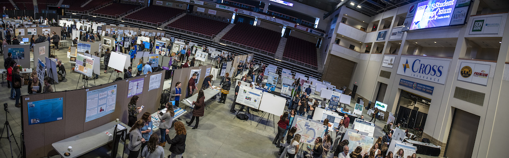 The fourth annual UMSS drew a crowd of over 1,000 people at the Cross Insurance Center in Bangor. Several hundred research projects and creative works from a diverse range of disciplines were on display. Undergraduate and graduate student presenters explained their work to judges and attendees in a variety of posters, oral talks and exhibits.