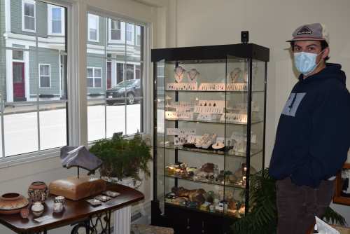with jewelry and other unique items in the store including rocks, gems, local pottery and even fossils that are millions of years old! Despite the seemingly small interior space, be prepared to spend a lot of time looking at all of the beautiful Maine-made items including the rock and gem “museum” in the back room.