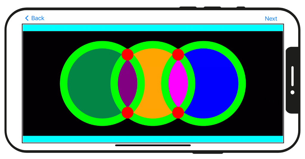 A drawing of what a three circle, two intersection Venn diagram would look like on VEMI’s Cyberlearning App.